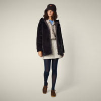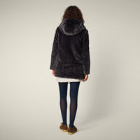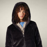 Synthetic fur 100% recycled polyester. Fabric with a soft and warm hand that provides complete coverage from the cold, but at the same time a fashionable look.
