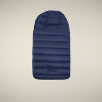 Trapuntato e imbottito, il sacco piumino neonato modello May presenta 3 asole sul retro per il passaggio della cintura del passeggino. Chiuso da zip e bottoni a pressione, si distingue per il tirazip e il logo rotondo arancione, elementi caratteristici dello stile Save The Duck.