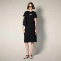 Realizzata in cotone biologico, la T-shirt donna modello Cle interpreta il messaggio della nuova collezione Smartleisure con la stampa sul petto e sulla schiena. Provala in abbinamento ad altri capi della capsule ASAP As Smart As Possible —pantaloni fluidi, gonne e giacche leggere—per passare dall’ufficio all’aperitivo in un attimo.