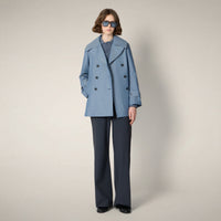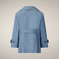 L'elegante linea a caban incontra uno stile casual nell'impermeabile da donna modello Sela, realizzato in chambray indaco con cuciture termonastrate per una buona protezione dalla pioggia. La costruzione doppiopetto, il rever ampio, la martingala e i listini regolabili su spalle e polsi affinano la silhouette. I bottoni gommati personalizzati e il logo rotondo aggiungono un segno riconoscibile.